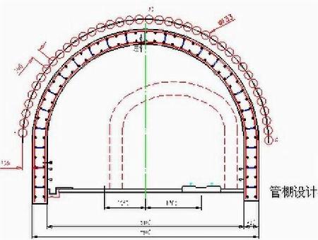 如何安全通過塌方充填段和流砂段,確保地面建筑物的安全是該工程能否順利進行的關鍵。在對施工方法進行篩選后,決定采用超長斜向大管棚超前支護作為本次施工的主要手段。管棚布置在斜井隧道開挖線外300mm的弧形輪廓線上,采用 φ133×8 mm的無縫鋼管,相鄰管棚中心間距為300mm,單根管棚長度為170m,共布置管棚39根,采用泥漿循環導向跟管鉆進法一次打設到位。斜井的坡度為20°。